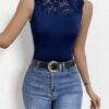 Top Tank Azul Real con Detalle de Encaje en Contraste y Cuello Alto – Estilo Casual y Elegante